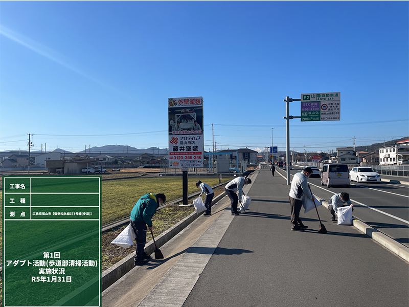 広島県アダプト制度に積極的に参加し、県道の美化・清掃活動を行っています。